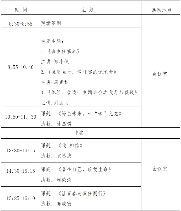 一、活动形式:名优教师讲座、主题班会示范研讨