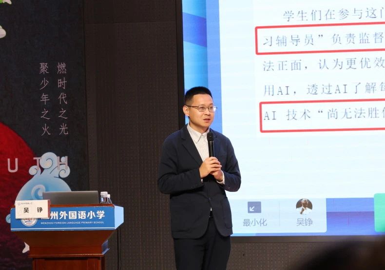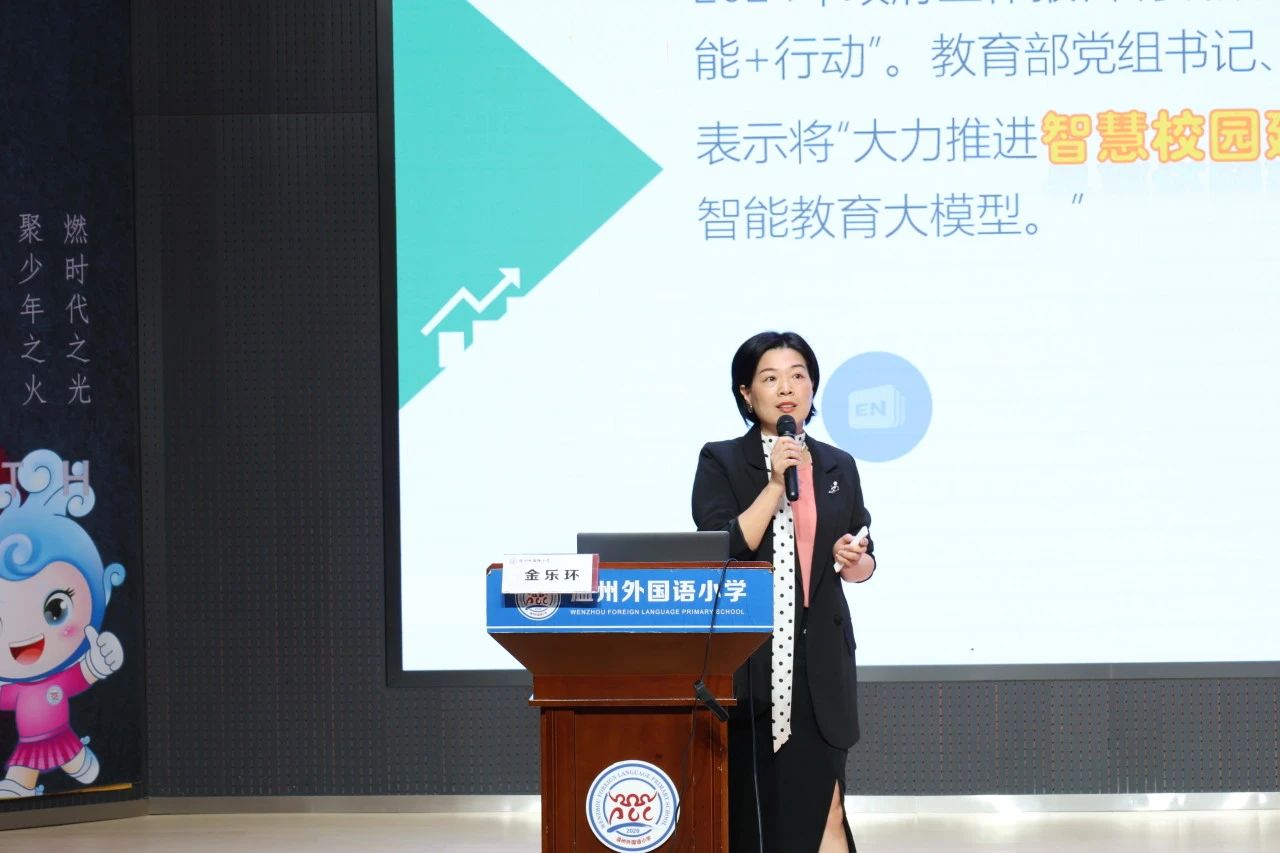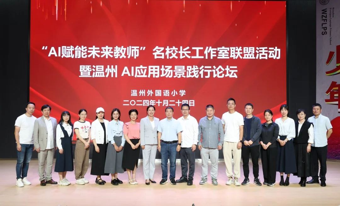 10 月 24 日,温州吴闪燕“名师送教”工作室第九次活动在温州外国语小学举行,参加本次活动的还有温州市李碧名校长工作室、瓯海区周良锡、姚锦勇、金乐环名校长工作室,龙湾区项涨禹名校长工作室、文成县吴利锋名校长工作室、平阳县施世然名校长工作室、温州市AI应用场景联盟学校,以及志同道合前行的校长、老师等近百人,大家合伙探寻AI时代教育转型的新路径与新未来。